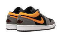 The Air Jordan 1 Low "Vivid Orange" is a colorway of the retro basketball shoe that stands out with eye-catching orange accents. The upper features a black synthetic nubuck base with Light Graphite overlays. A leather Vivid Orange Swoosh is located on either side of the shoe, matching font found on the “Wings” logo on the heel. More Vivid Orange accenting is seen on the collar and Jumpman logo on the tongue. A white rubber midsole and black rubber outsole complete the look. Release date: August 29, 2023