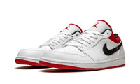 The Air Jordan 1 Low “White/Gym Red” is yet another appealing colorway of Michael Jordan’s first signature shoe that shows appreciation for the Chicago Bulls. Arriving on the always-in-demand low-top Jordan 1 model, the “White/Gym Red” features the classic white, black, and red team uniform colors of the historic NBA franchise. Smooth white leather forms the base of the shoe. A black tumbled leather Swoosh can be found on either side and a Gym Red “Wings” logo is stitched onto the heel. Additional branding appears in the form of a red Jumpman on the white nylon tongue. Red leather and nylon around the collar and on the underside of the tongue completes the look.
