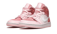 The Air Jordan 1 Mid “Digital Pink” is a springtime-inspired makeup of Michael Jordan’s first signature shoe in the popular mid-top silhouette. A Spring 2020 release by Jordan Brand, the “Digital Pink” recruits an interesting combination of soothing shades of pink in materials not commonly found on the Air Jordan 1. Both the perforated suede toe and the basketball-like pebbled leather collar and heel overlays display a Digital Pink construction. A lighter variant of the hue can be found on the laces and on the smooth leather toe cap, forefoot, and eyelets. A white leather Swoosh adorns both sides and a tonal embossed “Wings” logo appears on the collar. The pink tongue tag stitched onto the textured mesh tongue features white Jumpman and “Air” insignia. A cream-colored rubber midsole and Digital Pink outsole complete the look.