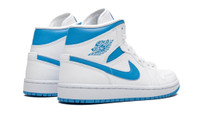 The Air Jordan 1 Mid “UNC” draws inspiration from Michael Jordan’s alma mater for a fresh new look on the mid-top silhouette. The famous University Blue of the University of North Carolina shines bright on this eye-pleasing colorway of the Jordan 1 Mid with the color covering the Swooshes and collar. A white leather base spans the perforated toe, mid-panel and heel. Additional hits of Carolina Blue can be found on the Wings logo on the collar and Jumpman branding on the white nylon tongue tab. Jordan Brand opts for an always classy white rubber midsole and contrasting light blue outsole to finish off the styling of the shoe. The Air Jordan 1 Mid “UNC” was released on January 14, 2020.