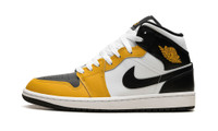 The Air Jordan 1 Mid "Yellow Ochre" is a colorway of the casual shoe with yellow accents. The attention-seeking “Yellow Ochre” Jordan 1 Mid features a combination of black, white, and yellow leather panels. More specifically, the shoe has a black leather perforated toe with a black leather collar and heel. Yellow Ochre leather is seen on the toe cap, forefoot, and eyelet panels. A black leather Swoosh appears on either side of the white leather mid-panel and a yellow “Wings” logo is found on the collar. Yellow Ochre-colored Jumpman and “Air” logos are seen on the tongue. Underfoot, a white rubber midsole and black rubber outsole complete the look.