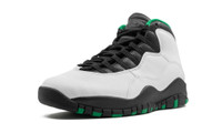 The Air Jordan 10 “Seattle Supersonics” is an original colorway of the ‘90s-era Jordan 10 model that features the team colors of the beloved former Seattle Supersonics NBA basketball team. Originally released back in 1995 as a part of Nike’s “City Series” of Air Jordan 10 colorways that honored specific NBA franchises including Charlotte, Orlando, New York, and Sacramento, the “Seattle” makeup is arguably the most legendary of the pack. Interestingly enough, a year after its release, it would be in fact the Sonics that Michael Jordan and the Bulls would defeat to win the 1996 NBA Championship. As for the sneaker, the “Sonics” Air Jordan 10 features a white leather base with contrasting black leather appearing on the eyelets and ankle collar. Accenting the upper is a plush green inner lining. Finishing touches include a black rubber midsole with the model's traditional striped outsole with Sonics-specific green and yellow accents. Release date: October 19th, 2019.