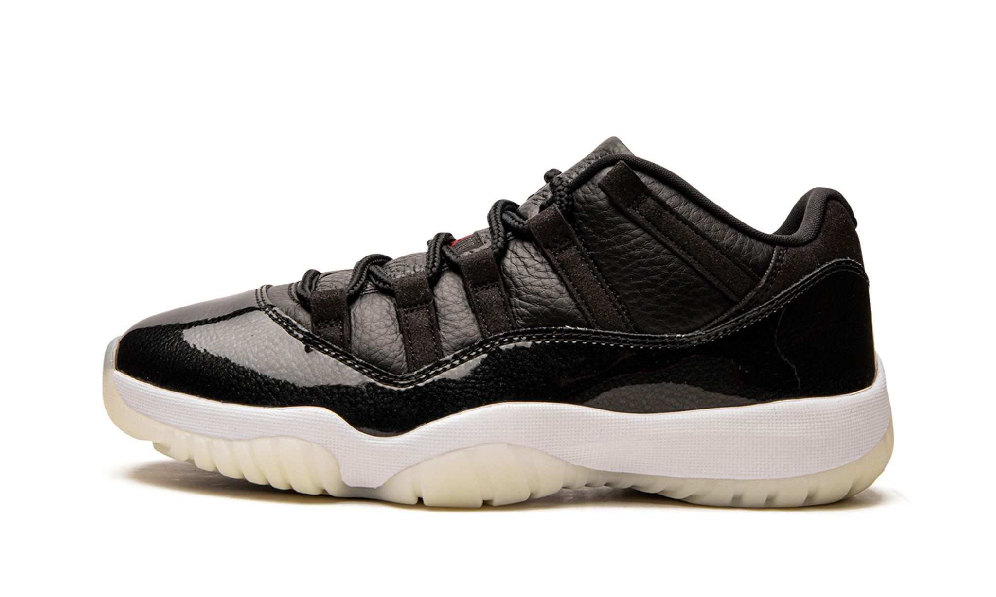 The Air Jordan 11 Low “72-10” is the alternate low-top version of the colorway of Michael Jordan’s retro basketball shoe that salutes the Jordan and the Chicago Bulls’ improbable 72-win season in 1995-1996. A popular, non-original colorway for the Jordan 11, the “72-10” look is reminiscent of the vintage basketball shoe’s “Space Jam” makeup, with a few noticeable modifications that honor the Bulls’ historic 72-win season. A black suede upper is complimented by a tonal, texturized mudguard. Branding appears in the form of a Metallic Red Jumpman on the heel and a red Jumpman on the branding patch on the tongue. Underfoot, a white foam midsole is paired with a mily, semi-translucent outsole. Release date: April 23, 2022