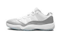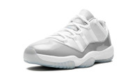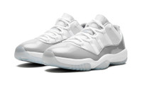 The Air Jordan 11 Low “Cement Grey” is a clean, neutral colorway of Michael Jordan’s eleventh signature shoe in its low-top form. The design features a white mesh build with a contrasting grey patent leather mudguard. Classic “JORDAN JUMPMAN” branding is found on the white mesh tongue. “23” insignia is on the heel. Underfoot, the shoe’s white foam midsole is paired with an icy blue translucent rubber outsole. Release date: April 1, 2023