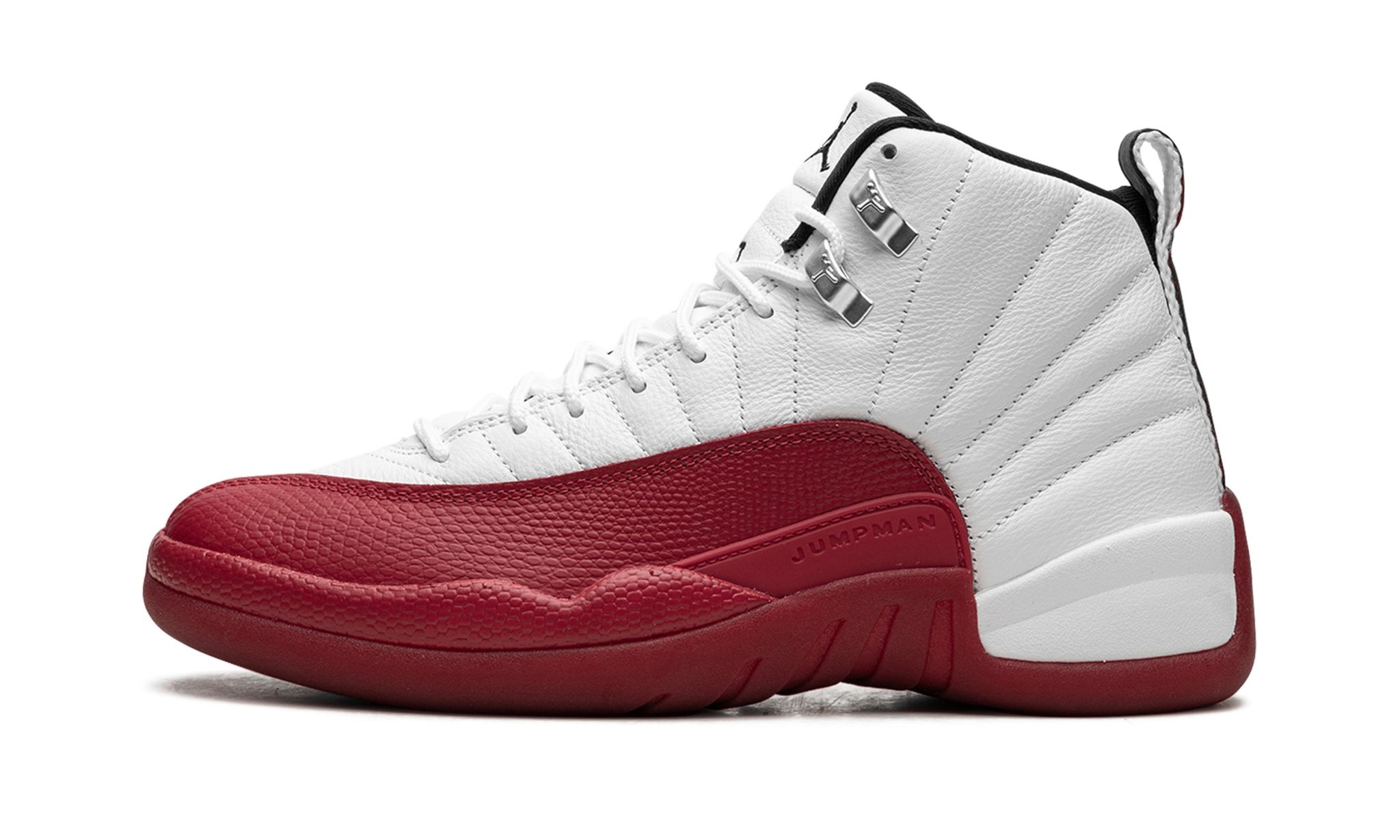 The Air Jordan 12 “Cherry” is the re-release of an original colorway of Michael Jordan’s twelfth signature shoe that debuted in 1997. Worn by Jordan with the Chicago Bulls throughout the NBA’s 1996-97 regular season, the Jordan 12 “Cherry” is one of the most popular and iconic Jordan models of all time. The 2023 version of the shoe remains faithful to the original style from ‘97. It features a white leather construction with a Varsity Red textured mudguard/toe panel that spills onto the midsole. Silver eyelets and black Jumpman and “Two 3” detailing are found on the collar and tongue, respectively. Release date: October 28, 2023
