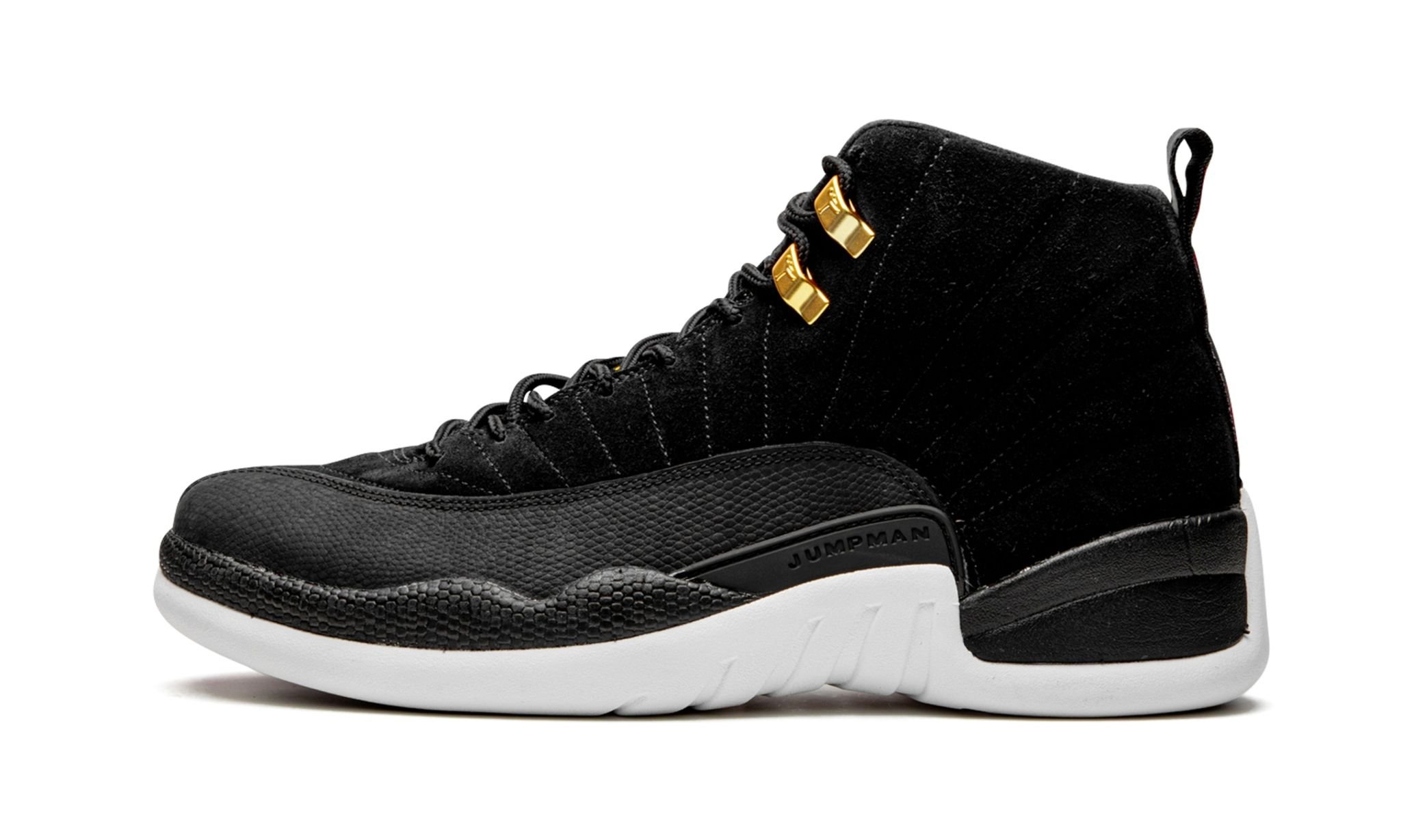The Air Jordan 12 “Reverse Taxi” takes the classic “Taxi” colorway of the same shoe and flips it for a brand new look. Originally releasing in 1997, the Air Jordan 12 is one of the most recognizable Air Jordan models thanks to its continued run in the spotlight in present day sneaker culture. The “Reverse Taxi” design sports a black suede upper with luxurious gold accents on the eyelets, while the black nubuck mudguard features the original pebbled texture. Tonal Jumpman branding can be found on the mid-panel and the traditional “Two 3” branding on the tongue is done up in yellow embroidered lettering. A white rubber outsole features red Jumpman branding underneath the forefoot. The Air Jordan 12 “Reverse Taxi” was released on October 31, 2019.