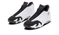 The Air Jordan 14 "Black Toe 2024" is the modern reissue of the original colorway of Michael Jordan’s fourteenth signature shoe. The Jordan 14 “Black Toe” debuted in 1998 and was re-released in 2006 with a new ribbed panel construction before it returned in 2014 back in its original form. Now, for the fourth time, the “Black Toe” Jordan 14 is back, and in its original form. The shoe has a smooth white leather upper complemented by a black suede toe box, giving the shoe its “Black Toe” nickname. A Ferrari-inspired Jumpman badge appears on the lateral side, while “Jumpman” and “23” branding appear on the heel. A Metallic Silver midfoot plate contrasts the white midsole and black rubber outsole. The Air Jordan 14 “Black Toe” is a faithful reproduction of the original version of the colorway from 1998. Release date: November 23, 2024