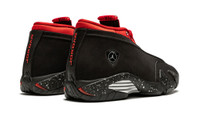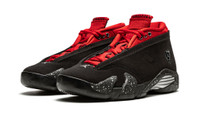 The Women’s Air Jordan 14 Low “Red Lipstick” is a women’s-exclusive colorway of Michael Jordan’s fourteenth signature shoe that draws inspiration from a popular beauty product. The Air Jordan 14, originally inspired by Jordan’s Ferrari 550 Maranello, looks to another source of inspiration, red lipstick, on this black-and-red based look. The upper is constructed almost entirely from black synthetic nubuck while the tongue and collar appear in a bright shade of red inspired by lipstick. A Ferrari-style Jumpman emblem is found on the collar and the sockliner features text that appears to be written in lipstick. A black midsole with contrasting white speckle detailing adds to the look. Lipstick-stained tissue paper inside the box accompanies the bold Women's Air Jordan 14 Low "Red Lipstick." Release date: September 16, 2021