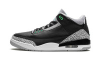 The Air Jordan 3 "Green Glow" is a colorway of Michael Jordan’s third signature shoe loosely inspired by the Jordan 3’s iconic “Black Cement” style, but with a twist. Like the Jordan 3 “Black Cement,” the “Green Glow” features a black leather upper and grey elephant print details, but with light green accenting instead of the red accenting found on the “Black Cement.” Specifically, Green Glow accenting appears on the eyelets, on the Jumpman branding on the tongue and heel, and on the “Jordan” logo on the outsole. A black painted mudguard appears on the heel above the white midsole. A small visible Air unit in the heel of the midsole gives the “Green Glow” a classic Jordan 3 look. Release date: March 16, 2024