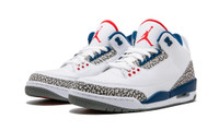 The Air Jordan 3 Retro OG "True Blue" makes its return in 2016, this time with a remastered twist. The "Nike Air" logo on the heel cements the shoe's classic feel. The pristine white premium leather upper matches nicely with True Blue and Fire Red detailing throughout the midsole and tongue.