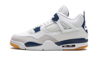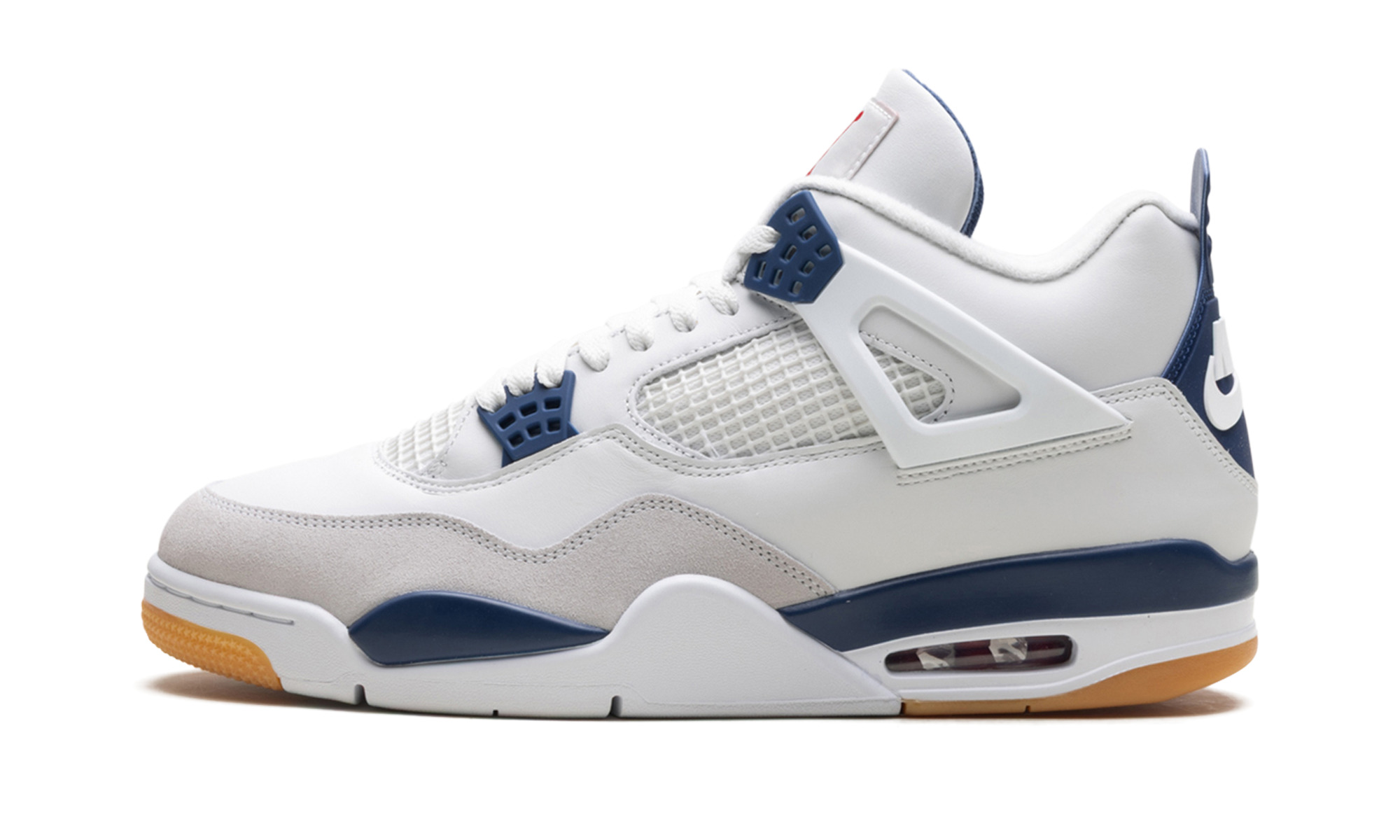 The Nike SB x Air Jordan 4 "Navy" is a new installment in the ongoing collaboration between Nike Skateboarding and Jordan Brand. The Nike SB AJ4 looks like a traditional Jordan 4 but has some unique details. Suede is placed around the toe box to make the shoe more skate-friendly. The clean navy and white upper is accented with a gum outsole, and Nike SB branding appears on the heel.