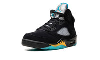 The Air Jordan 5 “Aqua” is a colorway of Michael Jordan’s fifth signature shoe in a look loosely inspired by a Player Exclusive of the shoe for Chris Paul in his time with the New Orleans Hornets. The “Aqua” features a black synthetic nubuck construction with translucent netting on the sides and tongue. An Aqua-colored Jumpman is embroidered on the Metallic Silver reflective tongue and on the heel. Additional Aqua accenting can be found on the Jumpman on the lace toggle, on the inner lining, and on the shark tooth detailing on the midsole. The design replicates Paul’s never released colorway of the shoe, sans his number “3” embroidered on each heel. Release date: April 8, 2023