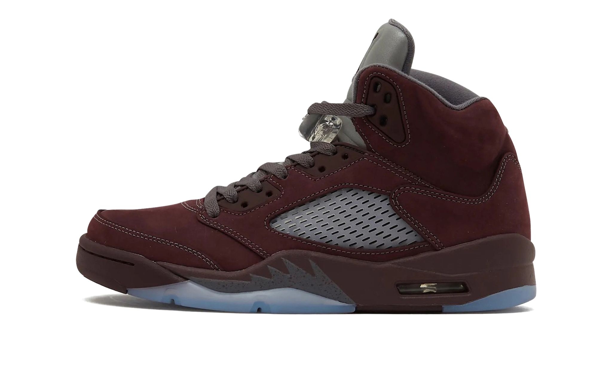 The Air Jordan 5 “Burgundy 2023” is the modern re-release of the non-original colorway of the retro basketball shoe that debuted in 2006. Once part of Jordan Brand’s “LS” or “lifestyle” collection, the Jordan 5 “Burgundy” was one of the model’s first non-original colorways, and one of its most popular releases of the 2000s. The modern edition is nearly identical to the original 2006 release. Deep Burgundy suede appears on the shoe’s upper. Translucent netting is found on the mid-panel and on the tongue. A Deep Burgundy Jumpman appears on the silver reflective tongue and a silver Jumpman is embroidered on the heel. Light Graphite shark tooth detailing is found on the burgundy painted midsole. Release date: September 9, 2023