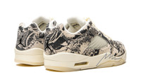The Women’s Air Jordan 5 Low “Expression” is the women’s sizing of the retro basketball shoe in a colorway with an abstract, mismatched design. As noticeable a shoe as any from Jordan Brand in 2022, the “Expression” Women’s Jordan 5 Low is complete with a tan and brown print throughout its upper. The look varies slightly from the left shoe to the right shoe. Translucent netting appears on the tongue and mid-panel. A black Jumpman logo is embroidered on the heel and on the tongue. Cream laces and a cream rubber midsole with grey outline sharktooth detailing complete the look. Release date: September 24, 2022