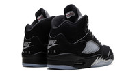 The Air Jordan 5 "Black Metallic Reimagined 2025" is an updated version of the iconic colorway of Michael Jordan's fifth signature sneaker. The 2025 AJ5 "Black Metallic" is part of Jordan Brand's Reimagined series that features subtle updates to the original. The Jordan 5 "Black Metallic Reimagined" has white laces and reflective hits across the edges of the upper's panels as well as on the Nike Air branding on the heel. This Air Jordan 5 retains many of the original design signatures including the fighter jet-inspired teeth around the midsole and mesh side panels.