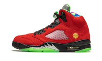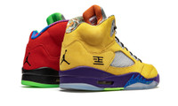 The Air Jordan 5 “What the” honors the 30-year anniversary of Michael Jordan’s fifth signature shoe with a medley of colors culled from some of the model’s most popular, non-original looks. Designs like the “Quai 54,” “Green Bean,” “Raging Bull,” and “Bel-Air” are just some of the colorways referenced. Breaking it down by shoe, the left shoe features the “Raging Bull’s” buttery all-red suede upper with “Quai 54” accenting on the shark tooth midsole and tongue. The right shoe displays an all-yellow nubuck build referencing the sought-after "Tokyo T23" colorway, with the “Army Green’s” silver and orange tongue, and the “Bel-Air’s” shark tooth detailing on the midsole. Both shoes feature nods to the “Tokyo T23” and “Shanghai” colorways with emblems from the two releases embroidered on opposite heels. Release date: November 7, 2020.
