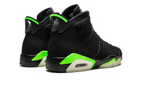 The Air Jordan 6 “Electric Green” is a Summer 2021 colorway of Michael Jordan’s sixth signature shoe that mimics the styling of the rare and unreleased Oregon Ducks Player Exclusive design. Jordan Brand celebrated the iconic Jordan 6’s 30-year-anniversary in 2021 by releasing several popular models of the silhouette alongside this “Electric Green” makeup. From a design standpoint, the “Electric Green” mimics the color block of the Jordan 6’s original “Infrared” colorway, trading the latter’s fiery red accents for a bright neon green hue. The entire upper is constructed of a black synthetic nubuck material that allows for the Electric Green embroidered Jumpman on the nylon lace shroud to garner attention. Additional neon green detailing can be found on the spoiler and on the black painted midsole. Tonal Jumpman embroidery appears on the back of the shoe. A small visible Air unit in the heel is consistent with the original design of the Air Jordan 6. Release date: June 5, 2021.