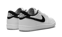 Relive an era of iconic hoops history with the Air Jordan 1 Retro Low '85 OG "Metallic Black." This low-top silhouette mirrors the exact 1985 cut, featuring a premium white leather upper accented by a glossy, metallic black Swoosh and heel tab. It retains essential heritage details like the woven Nike Air tongue tag. With classic court comfort from the encapsulated Air-Sole unit, this release blends retro authenticity with a sleek, minimalist edge for the ultimate versatile sneaker.