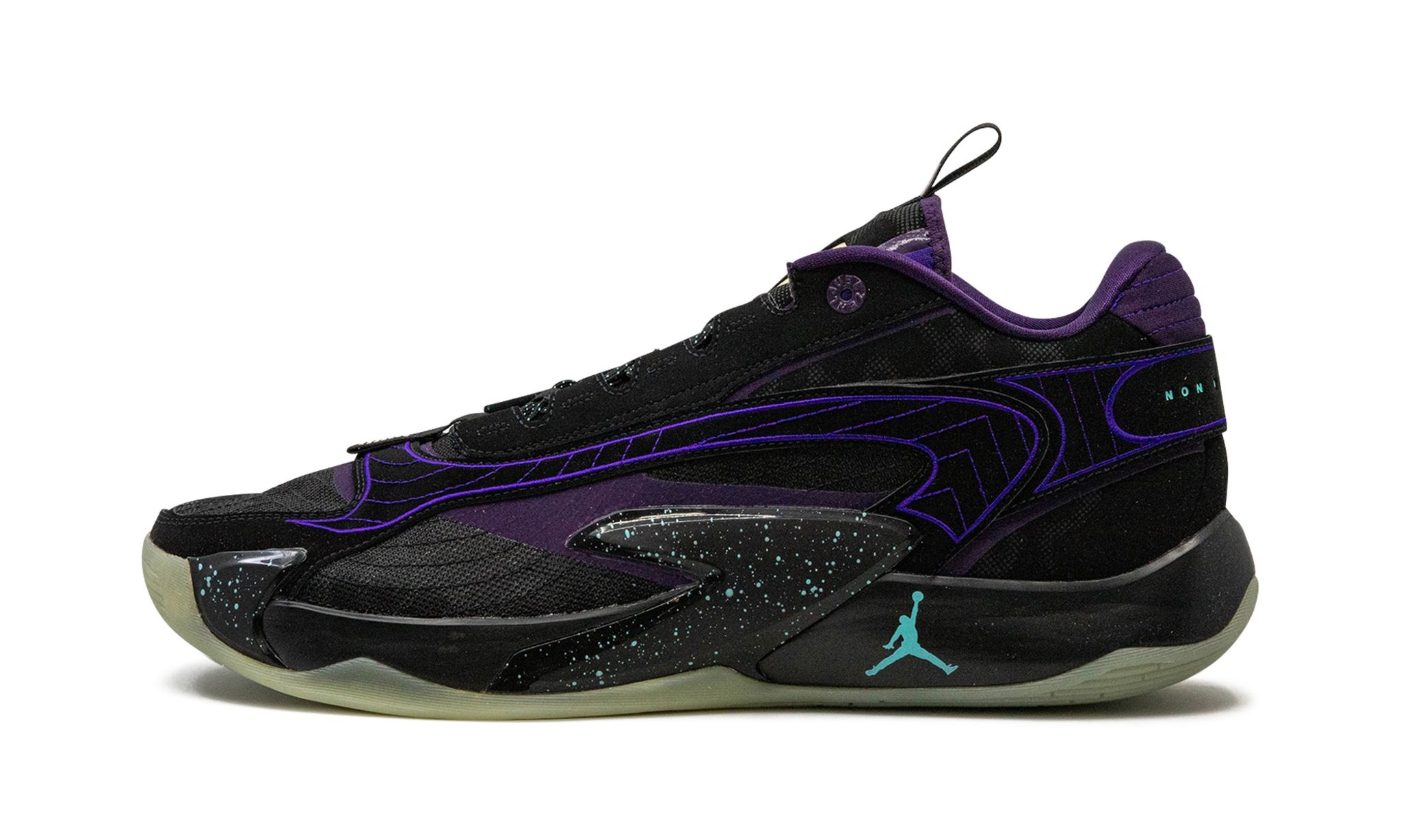 The Jordan Luka 2 "Space Hunter" is a colorway of Luka Doncic’s second signature shoe with Jordan Brand that has an outer space-inspired design. The “Space Hunter” is one of several original colorways of the Jordan Luka 2, and certainly one of its more eye-grabbing. The shoe has a black mesh construction with tonal suede overlays and purple piping throughout. On the black mudguard, a galaxy-like theme with teal speckles ties into the “Space Hunter” vibe. The shoe is mounted on a black midsole with a blue Jumpman and a semi-translucent outsole. Release date: July 11, 2023