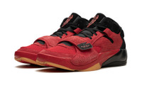 The Jordan Zion 2 “Raging Bull” is a colorway of basketball star Zion Williamson’s second signature shoe with Jordan Brand inspired by a classic Air Jordan shoe. The sneaker we’re referring to is the Air Jordan 5 “Raging Bull” that was originally released in 2009 as part of the “Defining Moments Pack.” That sneaker, like Zion’s Jordan Zion 2, features a red suede construction. The Jordan Zion 2 combines other colors and materials, though, for an update on the popular “Raging Bull” theme. More specifically, the shoe has a University Red mesh toe contrasted with red suede overlays throughout the design. Both the collar and heel have a combination of black suede and mesh. A red Jumpman is embroidered on the heel. “Zoom Air” branding is found on the red suede midfoot strap. Zoom Air technology is placed in the forefoot of the midsole.