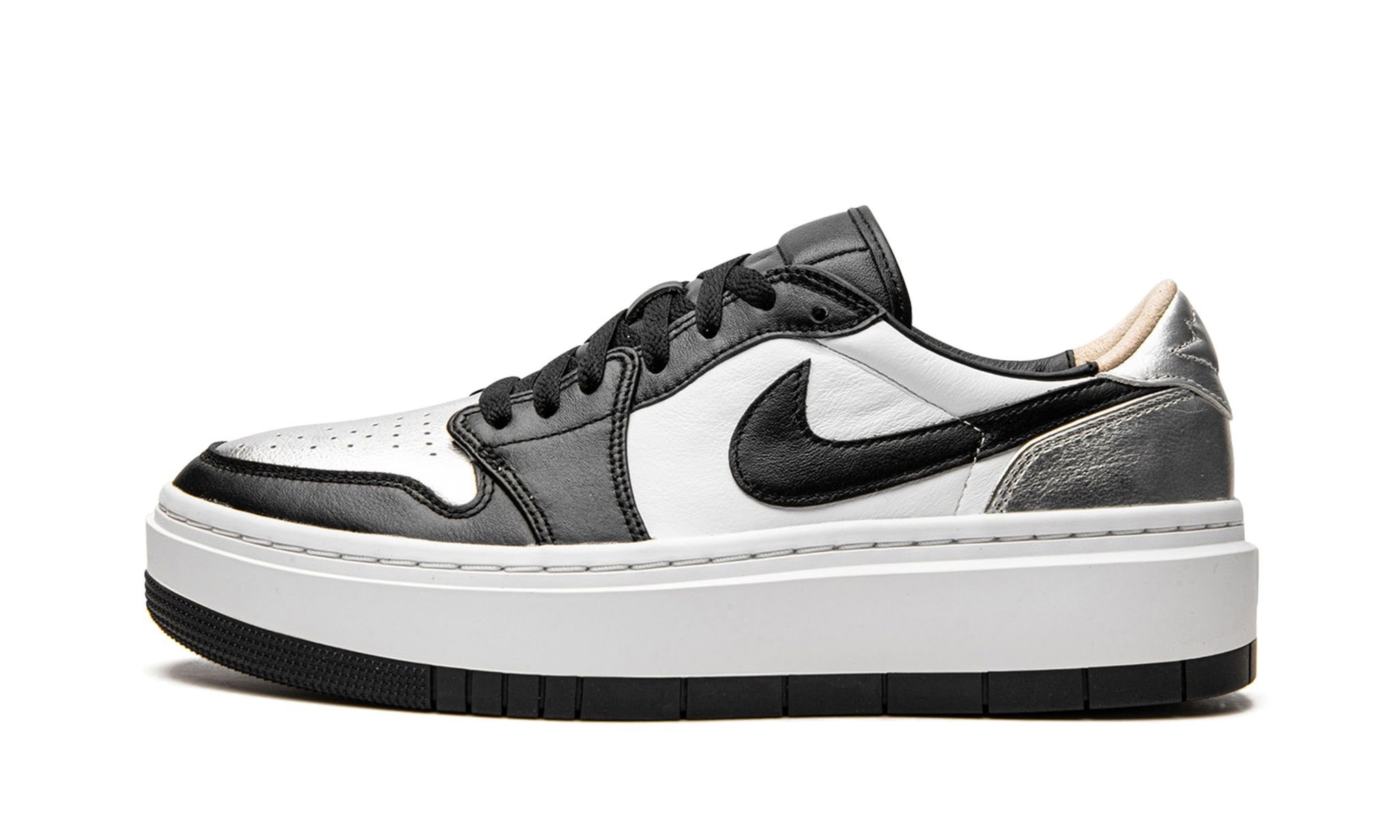 The Women’s Air Jordan 1 Elevate Low “Silver Toe” is a women’s-exclusive colorway of the retro basketball shoe with a modified, platform-style sole. The Jordan 1 Elevate Low updates the Jordan 1 Low with an oversized, white rubber midsole that adds significant height to the wearer while giving the shoe a modern look. The “Silver Toe” features a Metallic Silver leather perforated toe box with contrasting black leather on the toe cap, forefoot, and eyelets. A black leather Swoosh appears on the white leather mid-panel. More Metallic Silver leather is found on the heel. Release date: October 19, 2022