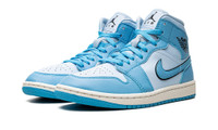 The Women’s Air Jordan 1 Mid “Ice Blue” is a women’s-exclusive colorway of the lifestyle shoe that is loosely inspired by Michael Jordan’s alma mater, the University of North Carolina. While not officially affiliated with Jordan’s former college basketball team, the “Ice Blue” still looks to the Tar Heels for inspiration by featuring its team uniform colors on its design. The shoe is complete with an Ice Blue leather base that’s contrasted with basketball-textured Dark Powder Blue leather overlays and Swoosh branding. A black “Wings” logo can be found on the collar and a black Jumpman appears on the tongue. The shoe’s midsole features an aged appearance that gives the design a classic, vintage look.