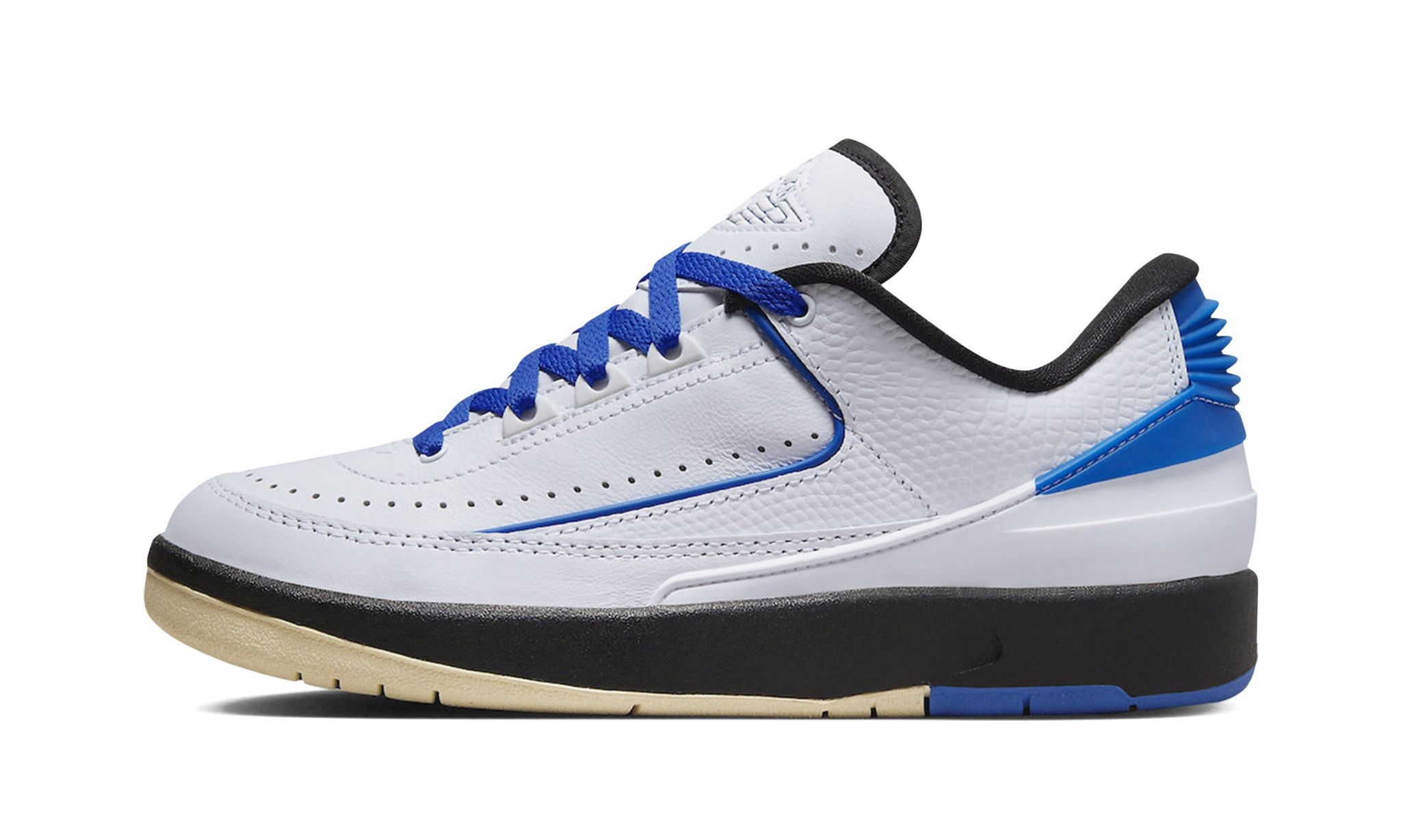 The Women’s Air Jordan 2 Low “Varsity Royal” is a women’s-exclusive colorway of Michael Jordan’s second signature shoe with blue accents. This clean and sporty look for the Jordan 2 Low features a white leather construction with textured leather overlays with Varsity Royal piping. Additional Varsity Royal accenting appears on the heel counter, laces, and rubber outsole. As for the rest of the shoe, a tonal “Wings” logo is seen on the tongue and the black rubber midsole is paired with a split cream and royal blue rubber outsole. Release date: July 6, 2023