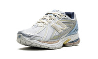 The Kith x New Balance 1906R “White” is one of two colorways of the popular shoe co-designed by Ronnie Fieg and New Balance in 2024. The “White” colorway features a breathable white open-mesh construction with synthetic overlays in a metallic silver finish with gold accents. A white and gold “N” logo can be found on the sides, while a pastel blue molded TPU overlay “cage” provides support on the heel. “NB” and “Kith” branding can be seen on the tongue and on the sockliner. Underfoot, an ACTEVA LITE midsole with New Balance’s comfortable ABZORB and SBS cushioning completes the look. Release date: March 11, 2024