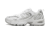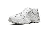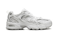 Step out in a fresh take on a classic with the New Balance 530, also known as the "Silver Metallic Polka Dots." These sneakers offer a stylish blend of retro inspiration and modern flair. The clean white base is accented with eye-catching silver metallic detailing, creating a look that's both timeless and on-trend. Experience all-day comfort with the cushioned design and breathable materials. Add a touch of sparkle to your everyday style with these versatile and iconic sneakers.