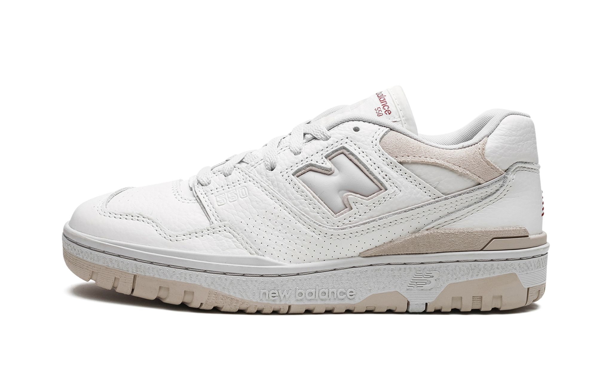 The New Balance 550 “Lunar New Year” is a special colorway of the retro basketball shoe that celebrates the traditional Chinese holiday. The “Lunar New Year” edition of the New Balance 550 opts for a minimalist look with its white leather construction and tan overlays. A tonal “N” logo appears on the sides and maroon “NB” branding lands on the heel and tongue tag. The shoe’s chunky rubber midsole appears in grey and is paired with a tan outsole.
