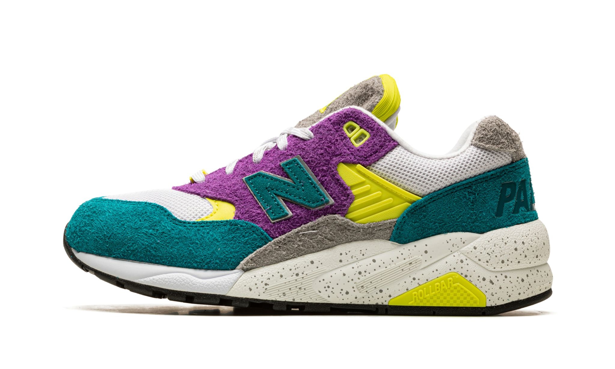 The Palace x New Balance 580 “Shaded Spruce” is one of two releases from the high-profile collaboration between the London skate brand and New Balance on the casual lifestyle shoe. From Palace’s Autumn 2022 collection, the New Balance 580 in “Shaded Spruce” marks the first-ever collaboration between Palace and New Balance. The design features a thoroughly 1980s and ‘90s-inspired look with its purple, teal, and neon green accents. The shoe features a white mesh base contrasted with a purple hairy suede overlay on the mid-panel, and teal hairy suede overlays on the toe and heel. A Shaded Spruce “N” logo appears on either side of the shoe. “Palace” branding is debossed on the heel, and co-branding is found on the tongue. A speckled grey midsole and grey outsole complete the look. Release date: September 23, 2022
