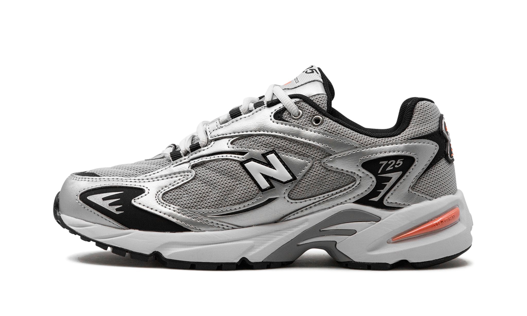 The New Balance 725v1 “Metallic Silver” is a grey-based colorway of the retro-inspired shoe. Inspired by performance running shoes from the 2000s, the New Balance 725v1 has a Y2K-style design that looks both retro and modern. The “Metallic Silver” colorway features a Raincloud-colored mesh base and Metallic Silver synthetic leather overlays. A white “N” logo outlined in black appears on either side of the shoe, while “725” detailing is seen on the lateral side of the heel, and on the tongue. New Balance’s ABZORB cushioning is embedded in the midsole for all-day comfort.