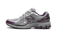 The New Balance 860v2 “Grey/Midnight Purple” is a colorway of the retro running shoe with grey and purple details. The upper features a grey open-mesh base with Metallic Silver and Midnight Purple synthetic leather overlays that give the shoe a decidedly early 2000s-era running shoe look. An oversized “N” logo is found on either side, while a “New Balance” logo appears on the tongue. Underfoot, a comfortable N-ergy cushioned midsole completes the look.