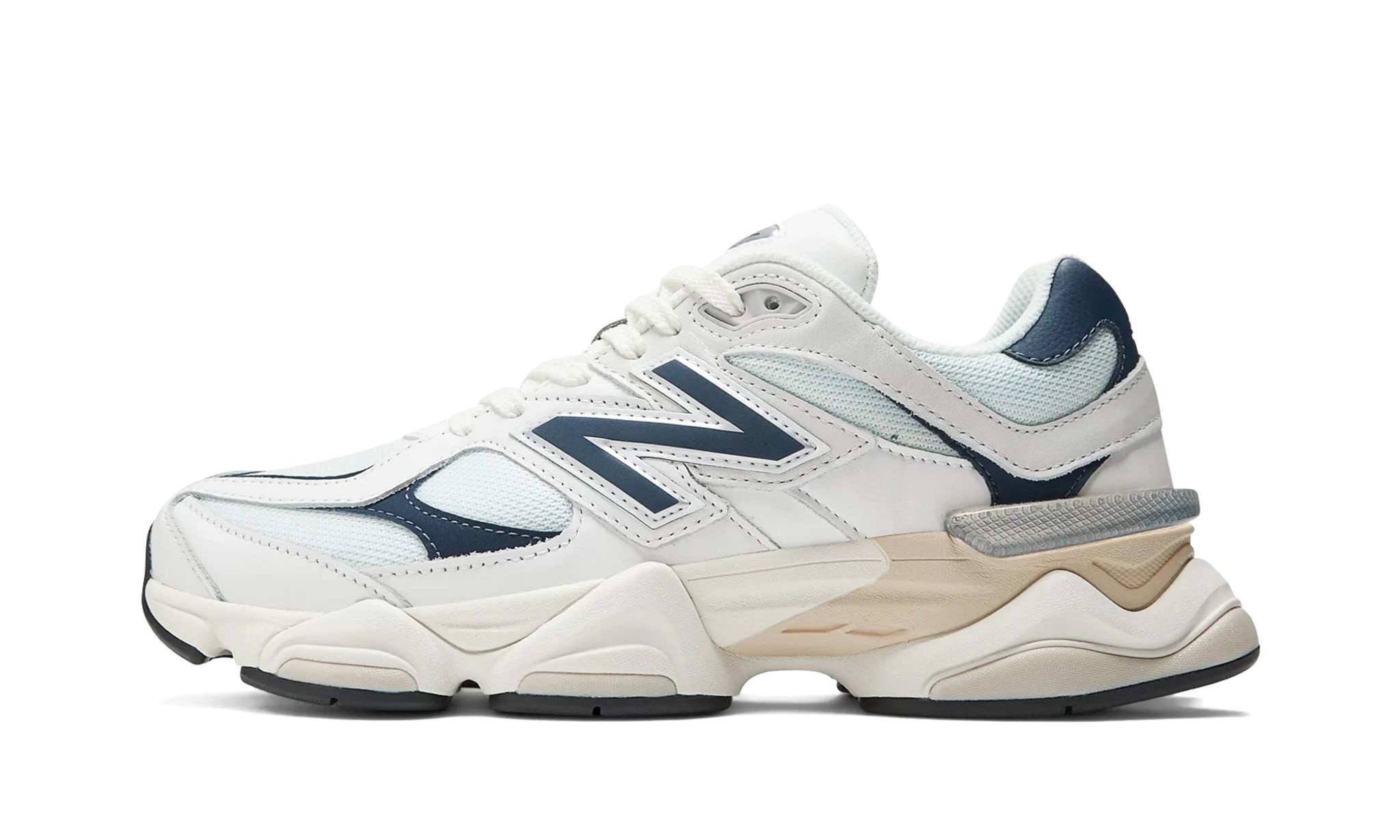 The New Balance 9060 "White/Navy" is a mostly two-tone, white-and-navy colorway of the popular, retro-looking lifestyle shoe. Debuted in 2022 via a high-profile collaboration with Chicago based designer Joe Freshgoods, the 9060 was released in a plethora of appealing colorways thereafter, like this “White/Navy” style. The shoe has a white mesh base and white, light grey, and navy leather overlays. An oversized navy “N” logo appears on the mid-panel. Other details include “NB” branding on the heel and “NB 9060” detailing on the tongue. A chunky white and cream midsole completes the look. Release date: August 1, 2023