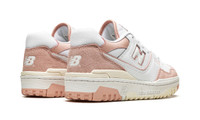 The Women’s New Balance 550 “Pink Sand” is a women’s-exclusive colorway of the retro basketball and lifestyle shoe with a two-tone, white-and-pink appearance. The New Balance 550 was brought back by Aimé Leon Dore in 2020 when the New York based clothing company’s founder and lead designer Teddy Santis discovered the shoe in New Balance’s archives. Here, the “Pink Sand” updates its vintage design with a white leather upper with Pink Sand-colored leather and suede overlays. A white “N” logo with pink trim appears on both sides of the shoe. Pink outline “550” branding is found on the forefoot. Additional branding includes an “NB” logo on the heel, and retro-inspired “New Balance 550 USA” detailing on the tongue. Underfoot, a chunky white rubber midsole is contrasted with a cream and pink outsole.