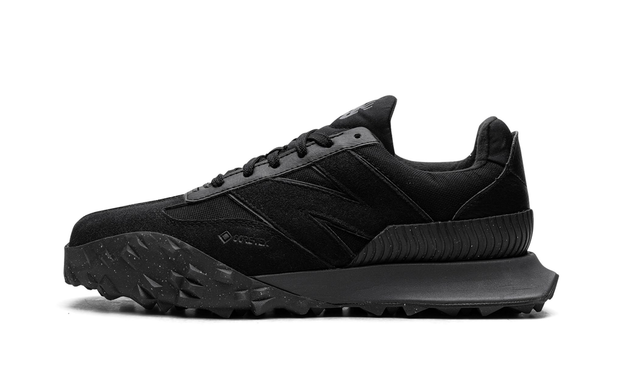 The New Balance XC-72 Gore-Tex “Triple Black” is a monochromatic black colorway of the retro-modern shoe with a weather-resistant construction. Made for inclement weather conditions, the XC-72 Gore-Tex features a water-resistant design that keeps the wearer’s feet dry in harsh conditions. The shoe has an all-black appearance, with a black nylon base and black suede overlays on the toe, forefoot, and eyelets. An oversized “N” logo appears on either side of the shoe. Underfoot, a black rubber sole with treading that extends to the front of the toe gives the shoe an aggressive, contemporary-yet-retro look.