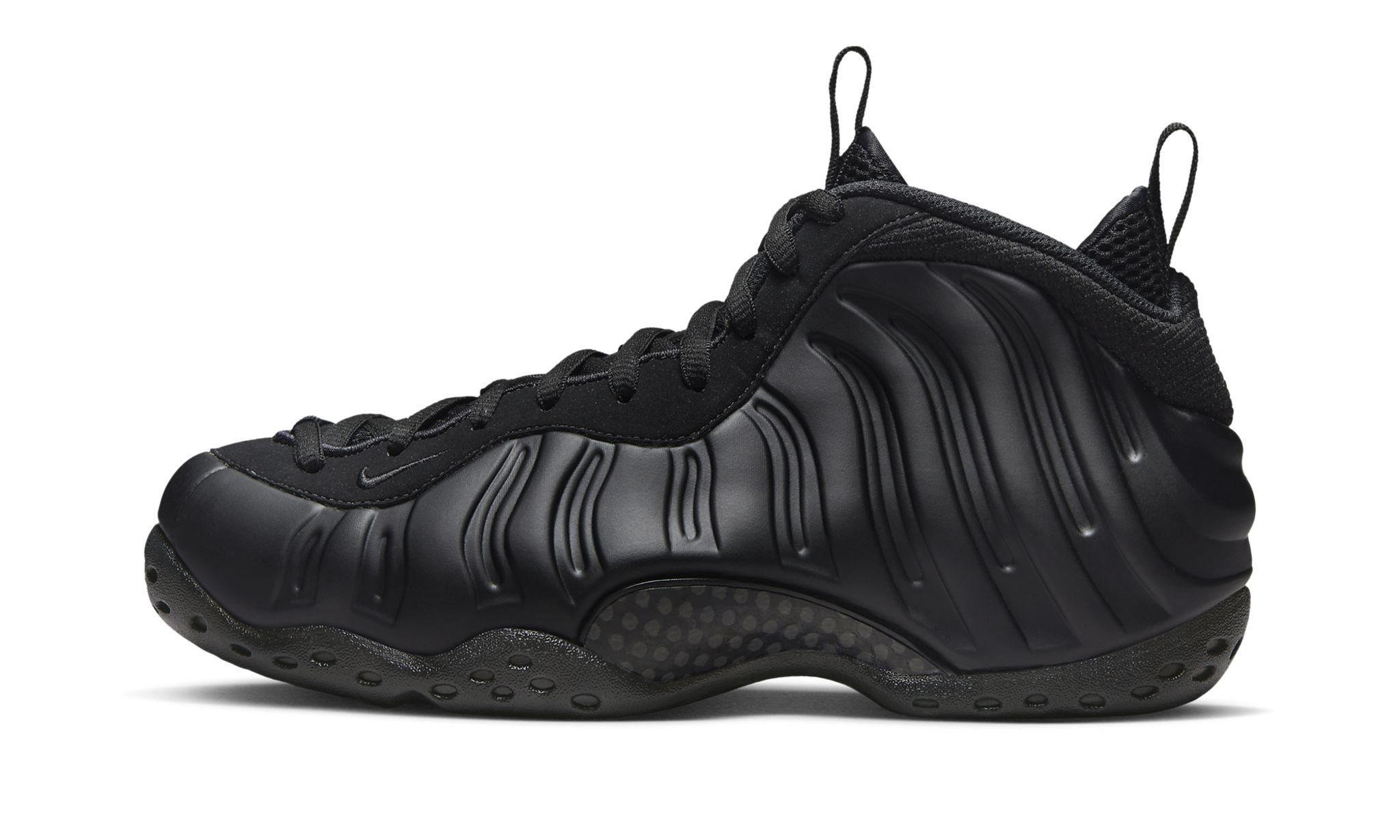 The Nike Air Foamposite One "Anthracite" is the 2023 re-release of the colorway of the retro basketball sneaker that debuted in 2007. Worn by Anfernee “Penny” Hardaway in the NBA in 1997, the Air Foamposite One was brought back as a lifestyle shoe in the mid-to-late 2000s. The “Anthracite” colorway was released by Nike in 2007 and was one of the retro basketball sneaker’s most sought after designs back in the day. Here, the contemporary version is a one-to-one remake of the original style. The shoe’s molded Foamposite shell is designed in Anthracite, or very dark grey. Black synthetic nubuck overlays contrast the look. Hardaway’s signature “1-Cent” branding appears on the heel and tongue. A smoky translucent rubber outsole completes the look. Release date: December 12, 2023