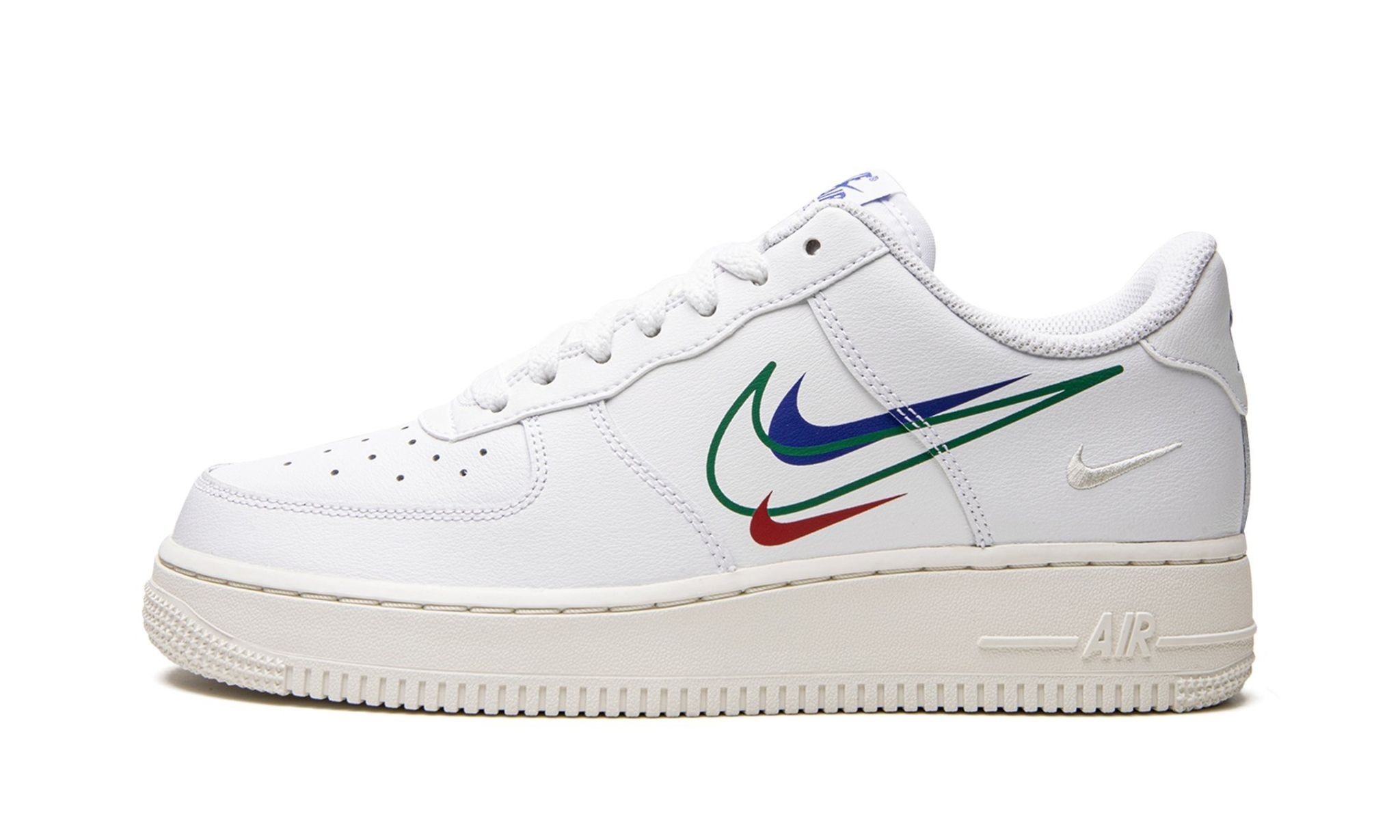 The Nike Air Force 1 Low “Multi-Swoosh” is a colorway of the retro basketball shoe that nods to its classic “White on White” iteration, but with a twist. In featuring a predominately all-white leather design, the “Multi-Swoosh” Air Force 1 is inspired by the model’s “White on White” colorway, but that’s where the similarities between the two Air Force 1s stops. On the “Multi-Swoosh,” colorful Swoosh logos are found on the lateral side of the shoe. A tonal Swoosh is embroidered on the lateral side of the heel. Blue “Nike Air” and Swoosh branding appears on the heel, while blue “Nike Air Force 1” detailing can be found on the tongue tag. A cream rubber sole with a tonal “Air” logo on the lateral side of the midsole completes the look.
