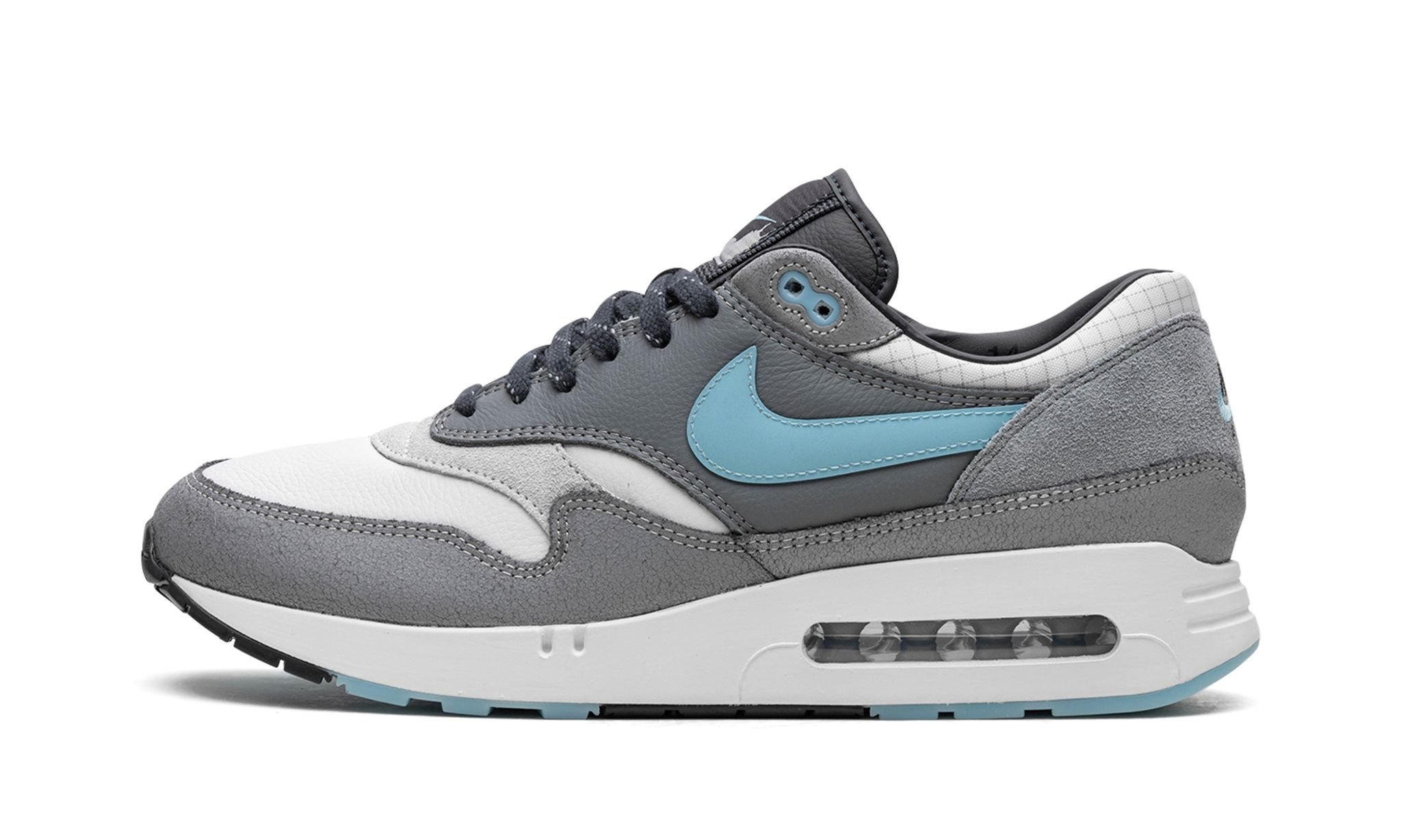 The Nike Air Max 1 '86 "Chicago" is a colorway of the retro performance running shoe from the “Chicago” pack that draws inspiration from the Great Chicago Fire of 1871. Following the massive fire that spread throughout the Windy City, residents worked together to repair the city’s architecture by replacing burned wooden structures with steel, concrete, and glass. As for the shoe at hand, the upper shows love to the “second city” of Chicago with colors inspired by skyscrapers and modern buildings. The upper features a white mesh base with Wolf Grey leather overlays and a Blue Chill leather Swoosh, the latter of which is inspired by the mirror image of buildings reflecting off the surface of Lake Michigan. Release date: October 21, 2023