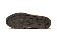 The Travis Scott x Nike Air Max 1 “Saturn Gold” is one of two colorways of the vintage performance shoe designed by the hip-hop superstar and Nike in December 2021. The “Saturn Gold” was released alongside the “Baroque Brown” edition of Travis Scott’s Air Max 1 collaboration for Nike’s Holiday 2021 collection. Like the “Baroque Brown,” the “Saturn Gold” features a modified look with rugged, outdoors-inspired details. The entire upper, including the mesh base, synthetic nubuck overlays, and inverted Swoosh branding on the lateral side, as well as the Swoosh branding that faces the proper direction on the medial side, appear in a monochromatic Saturn Gold design. Pocket knife-inspired nylon straps with geometric pattern can be found on the collar and heel. Dual “Nike” and “Cactus Jack” branding appears on the back of the left and right shoe, respectively. Durable blue rope laces with speckle detailing give the shoe an outdoors vibe. Underfoot, the foam midsole appears in the same Saturn Gold hue as the upper. Scott takes the monochromatic look a step further by covering the visible Air window in the heel in Saturn Gold. Release date: December 16, 2021
