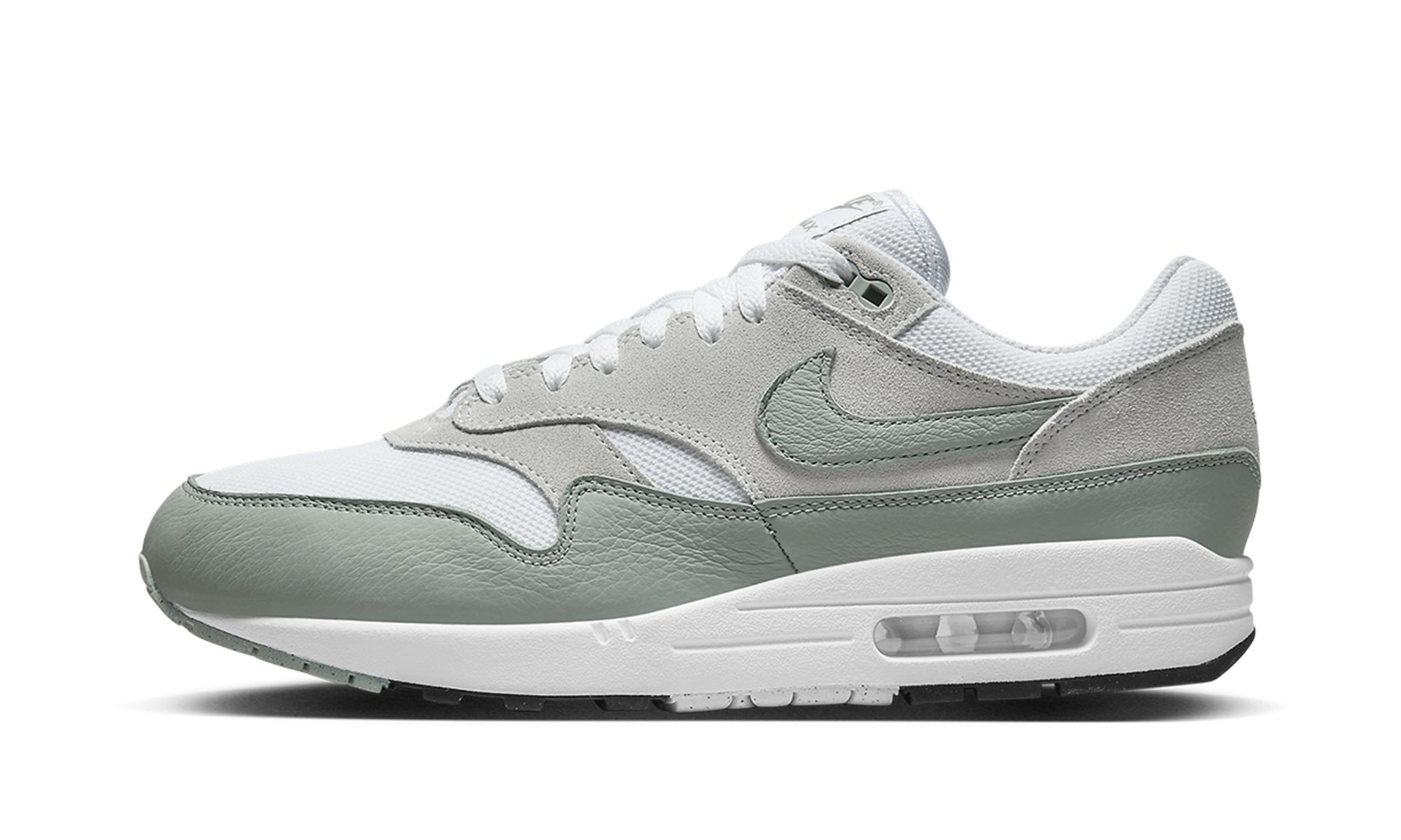 The Nike Air Max 1 “Mica Green” is a colorway of the retro running shoe with springtime vibe. The “Mica Green” is designed in the same color block and style as the original Air Max 1 colorways from 1987. It features a white mesh base with grey suede overlays and a Mica Green leather mudguard and Swoosh on the sides. “Nike Air” branding is embroidered on the heel and “Nike Air Max 1” insignia is found on the white nylon tongue tag. Underfoot, a visible Air bubble in the heel of the white foam midsole provides the classic Air Max 1 look and a comfortable ride. Release date: April 14, 2023