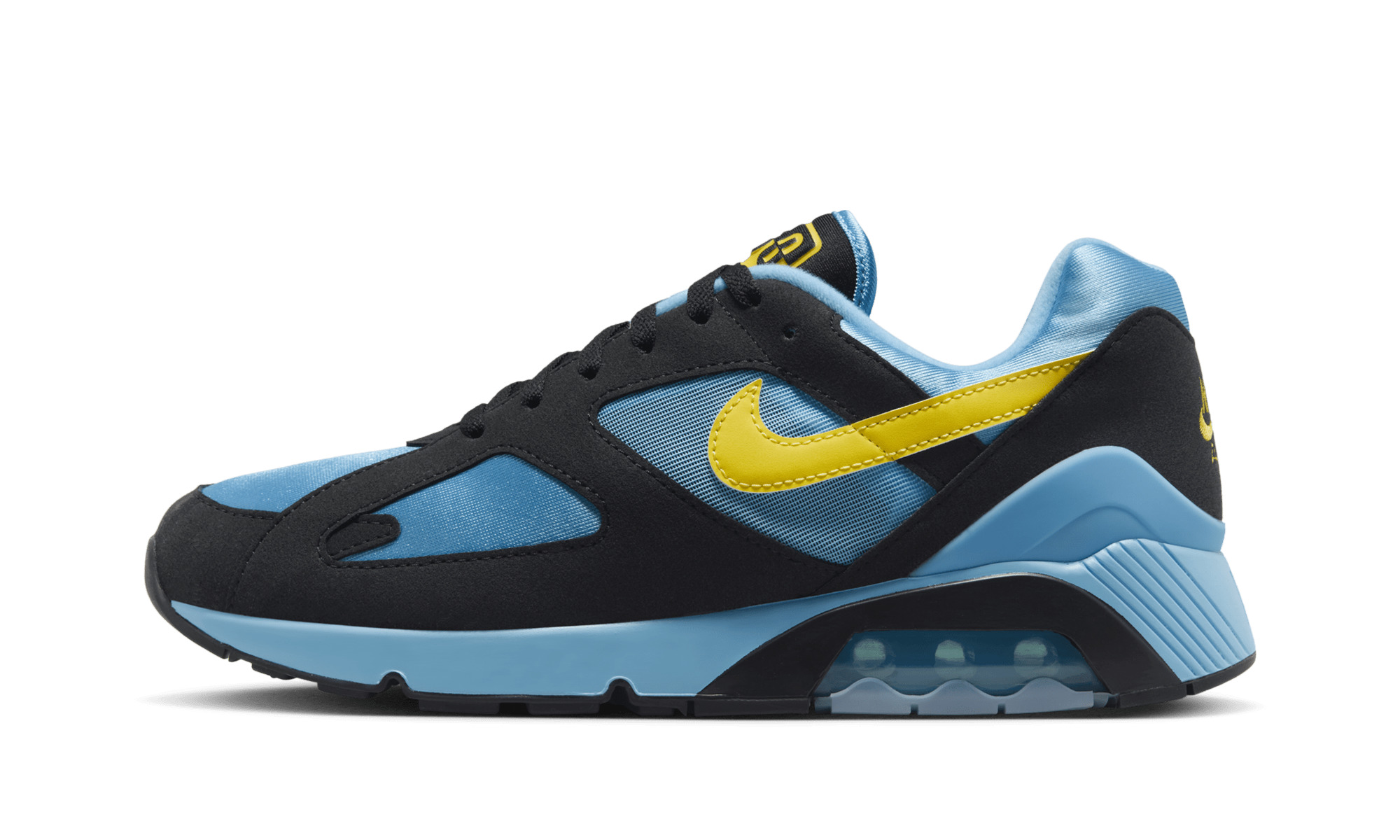 The Nike Air 180, originally released in 1991, made history by allowing 180 degrees of visible Air to connect directly with the pavement. This retro version captures the technical, loud aesthetic of early '90s runners, brought back in a striking, high-contrast color scheme.