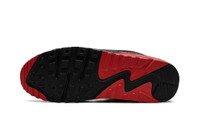 The Nike Air Max 90 "Black/Red" is a colorway of the retro running shoe with fiery red accents. Debuted as the Nike Air Max 3 back in 1990 before changing to the Air Max 90, the retro sneaker is one of the most beloved in all of Nike’s footwear catalog. The “Black/Red” colorway features a black textile base paired with a tonal nubuck mid-panel and mudguard. A white leather Swoosh is seen on both sides of the shoe and a red “Air Max” branding window is found on the lateral side of the mudguard. Additional branding elements include “Nike Air” detailing on the heel and “Nike” logo imagery on the tongue. A visible Air cushioning unit is located within the red-colored panel on the midsole. Release date: September 25, 2023