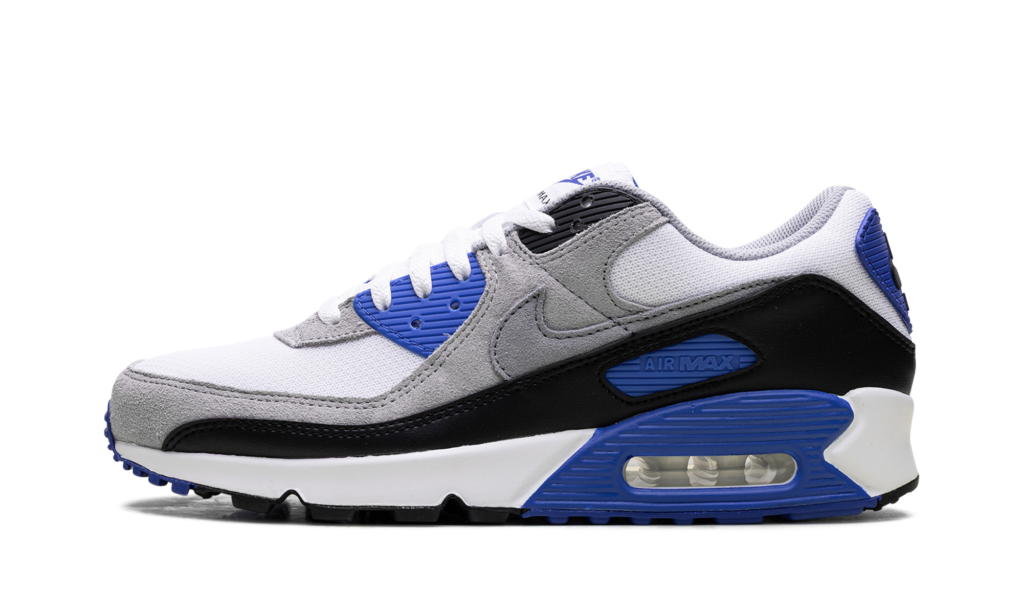 The Nike Air Max 90 "Hyper Royal" takes the legendary early '90s silhouette and injects it with a striking, electric blue energy. This version combines a clean, neutral base with vibrant color pops, delivering a classic sneaker with undeniable street appeal.