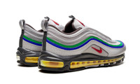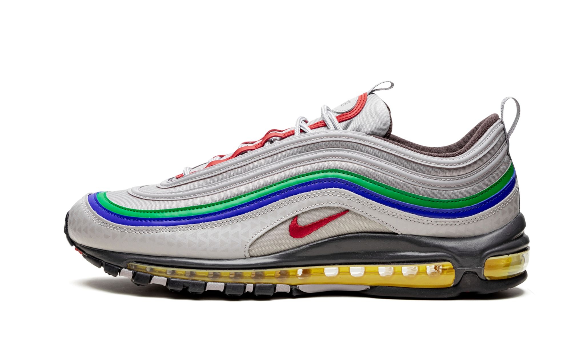 The Nike Air Max 97 “Nintendo 64” is a playful colorway of the tried-and-true late ‘90s running shoe. This special release strikes a chord for anyone who came of age during the late 1990s, as Nike outfits their beloved Air Max with a colorway inspired by the Nintendo 64 gaming system. Pure nostalgia at its finest, the “Nintendo 64” Air Max 97 applies the colorful theme of both console and controller to the upper. Vibrant hues of green and blue contrast the silver leather and mesh base of the upper. Three small dots are placed on the front pull tab as a clever nod to the controller of the N64. The left and right tongues feature “Power” and “Reset” detailing, respectively. A black rubber midsole and visible toe-to-heel Max Air cushioning system in a yellow tint akin the buttons found on the controller completes the look of this throwback design. The Nike Air Max 97 “Nintendo 64” released on September 25h, 2019.