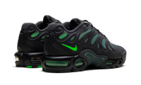 The Nike Air Max Plus Drift "Black Volt" is a colorway of the retro-modern casual shoe with a gradient design. The Air Max Plus Drift debuted in 2024 and is an evolution of the Nike Air Max Plus, as it has the same wavy overlay panels as the Air Max Plus, but with a substantially more bold look. As for its design, the upper has a dark green textile base that fades to a Volt hue on the heel. A Volt Swoosh logo can be found on the lateral side of the heel, while a black Swoosh appears on the medial side. Underfoot, the Air units in the forefoot and heel are tinted in a Volt-colored hue.