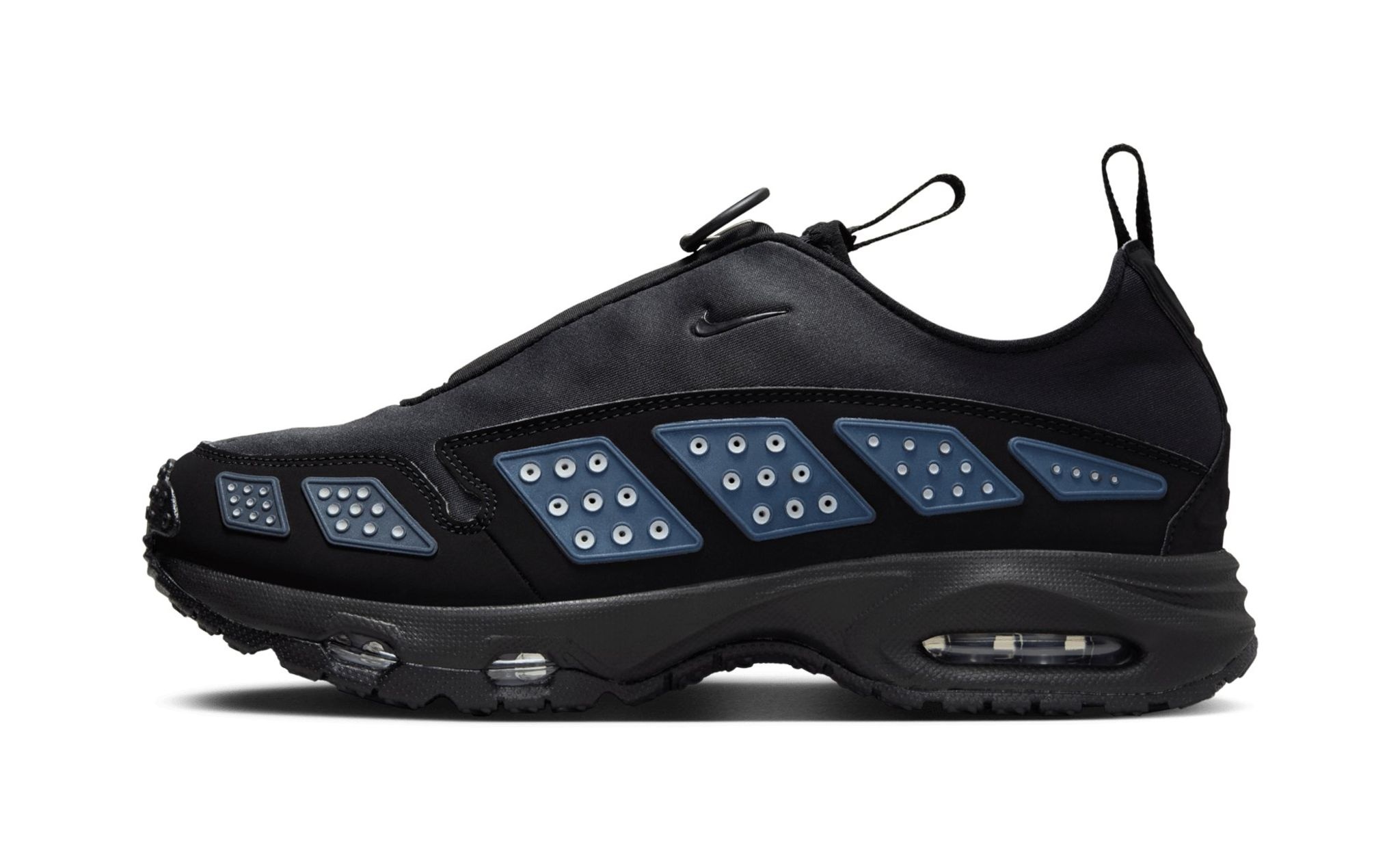 Ahead of its time in '99, the innovative Air Max SNDR is back and bolder than ever. From the secure fit around the heel to the zip-up shroud, this legendary sneaker continues to break the mould. Its stunning colourway mixes Silver accents with a black shroud, while the signature reflective design panels on the mudguard flicker for eye-catching contrast.