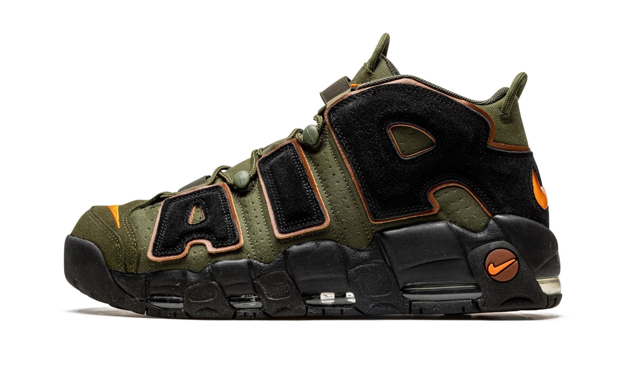 The Nike Air More Uptempo “Cargo Khaki” is an earth tone colorway of Scottie Pippen’s former signature shoe. The Air More Uptempo debuted back in 1996 is was worn by Pippen with the Chicago Bulls during the team’s historic 1995-96 season in the NBA. On the “Cargo Khaki,” the shoe receives a makeover that includes olive green-colored leather on its base and black suede oversized “AIR” branding on either side. An orange Swoosh logo is embroidered on the toe and a Jeweled Swoosh appears on the heel. Two olive green pull loops, one on the tongue and the other on the heel, assist with easy on/off wearability. Visible Air cushioning is found in the black rubber midsole. Release date: September 14, 2022
