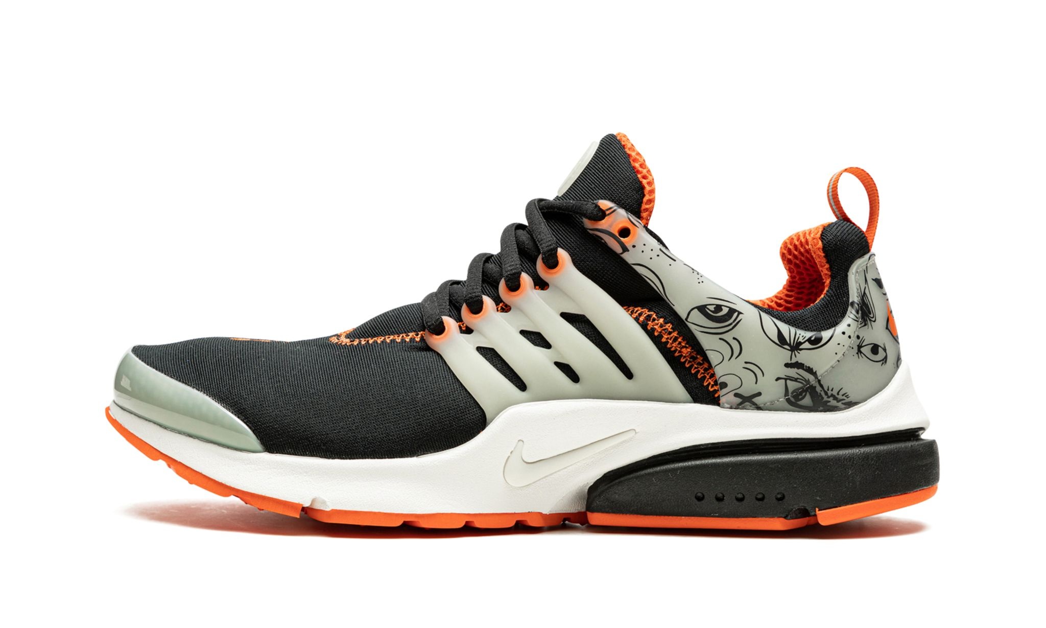 The Nike Air Presto “Halloween” is an October 2021 release of the retro performance running shoe in a festive colorway primed for Halloween. Yet another creative Halloween-inspired release from Nike, the Air Presto in the aptly named “Halloween” design features the same glow-in-the-dark detailing that appears on several of Nike's “Halloween” colorways. Specifically, the upper's semi-translucent RPU "cage" is treated with a glow-in-the-dark design that illuminates neon green in the dark after being exposed to light. Spooky “eye” graphics are printed on the molded heel counter. The shoe's base is constructed from black neoprene. A glow-in-the-dark Swoosh is found on the lateral side of the white foam midsole to complete the look. Release date: October 21, 2021