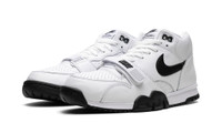 The Nike Air Trainer 1 “White/Black” is a “Panda” inspired colorway of the old school cross-training shoe. Designed by Tinker Hatfield, the Air Trainer 1 is the first-ever cross-training shoe, and a classic sneaker in Nike’s archives. The model was part of a popular Travis Scott collaboration, and later released in this versatile “White/Black” colorway in 2023. The shoe features a white leather build with a black leather Swoosh on the sides. Contrasting “Nike Air” branding is embroidered on the heel and black “Nike” logo appears on the white leather midfoot strap. Vintage “Nike” detailing is found on the tongue. The white foam midsole and black rubber outsole complete the look. Release date: February 11, 2023